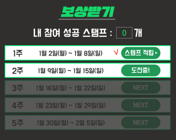 ![]() https://mssabu.net/v/web/event_221207.php 해당 이벤트 페이지에서 내 참여 현황으로 들어가면 스탬프 적립을 받을 수 있어요! 반드시 스탬프 적립하기를 클릭해야만 돼요!