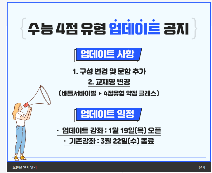| **수능 4점 유형 업데이트 공지** | 2023-01-13 | ||||||||||