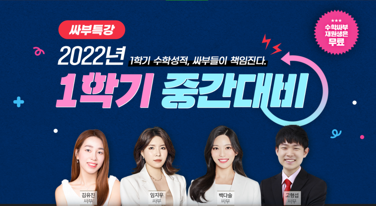 1학기 중간고사 대비도 수학싸부와 함께!